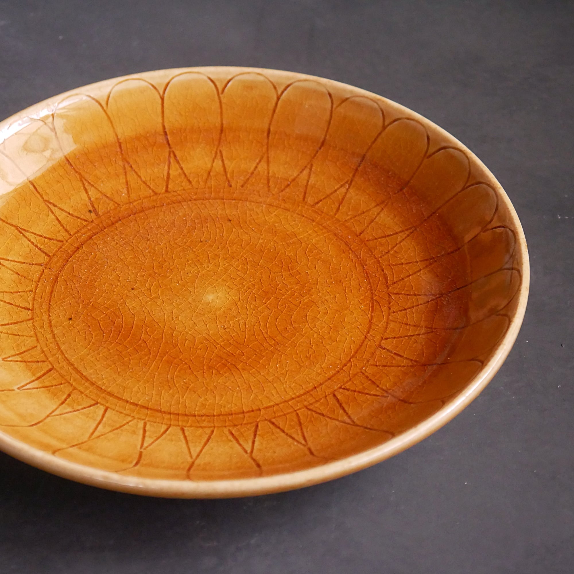 線描き輪花皿 飴 24.52.PM