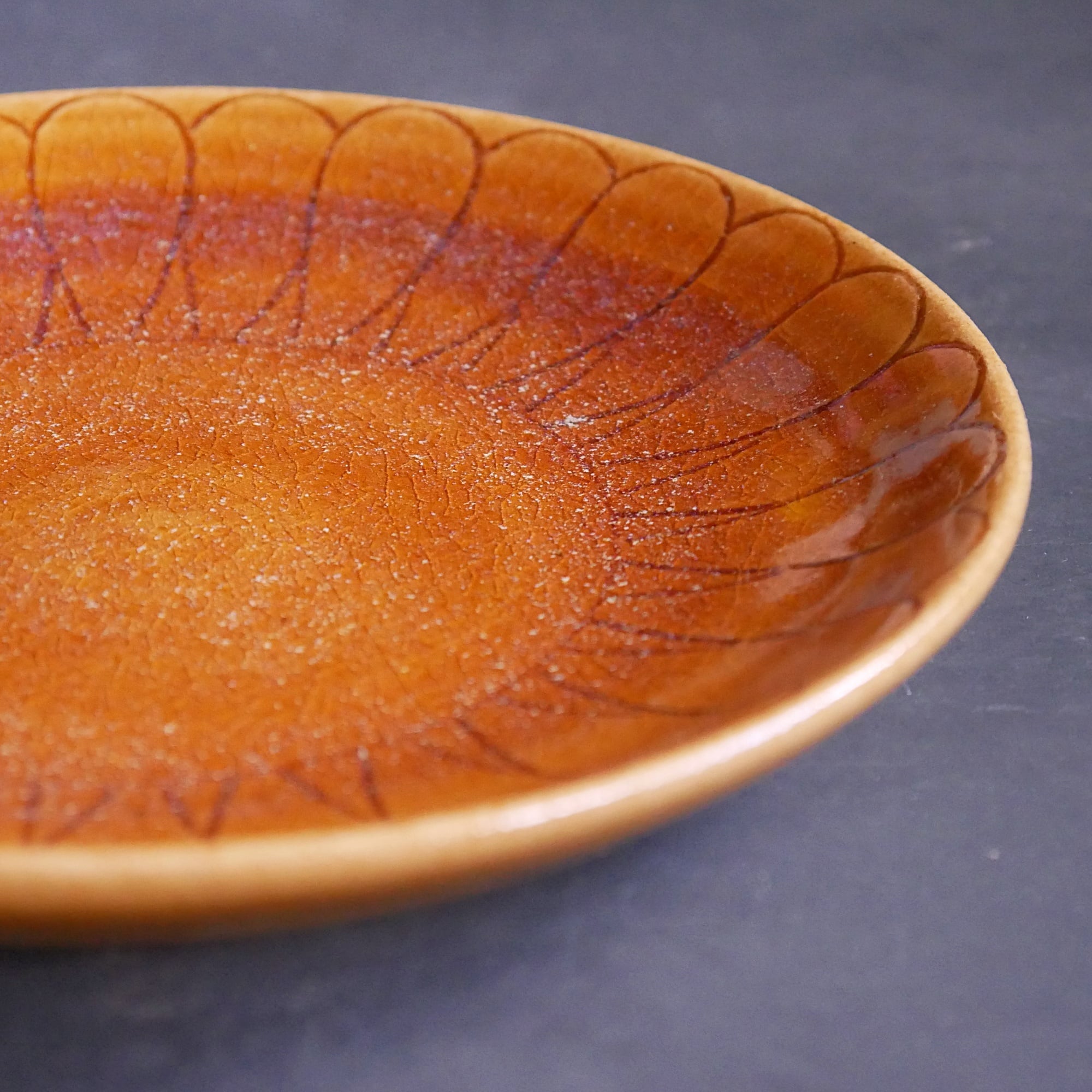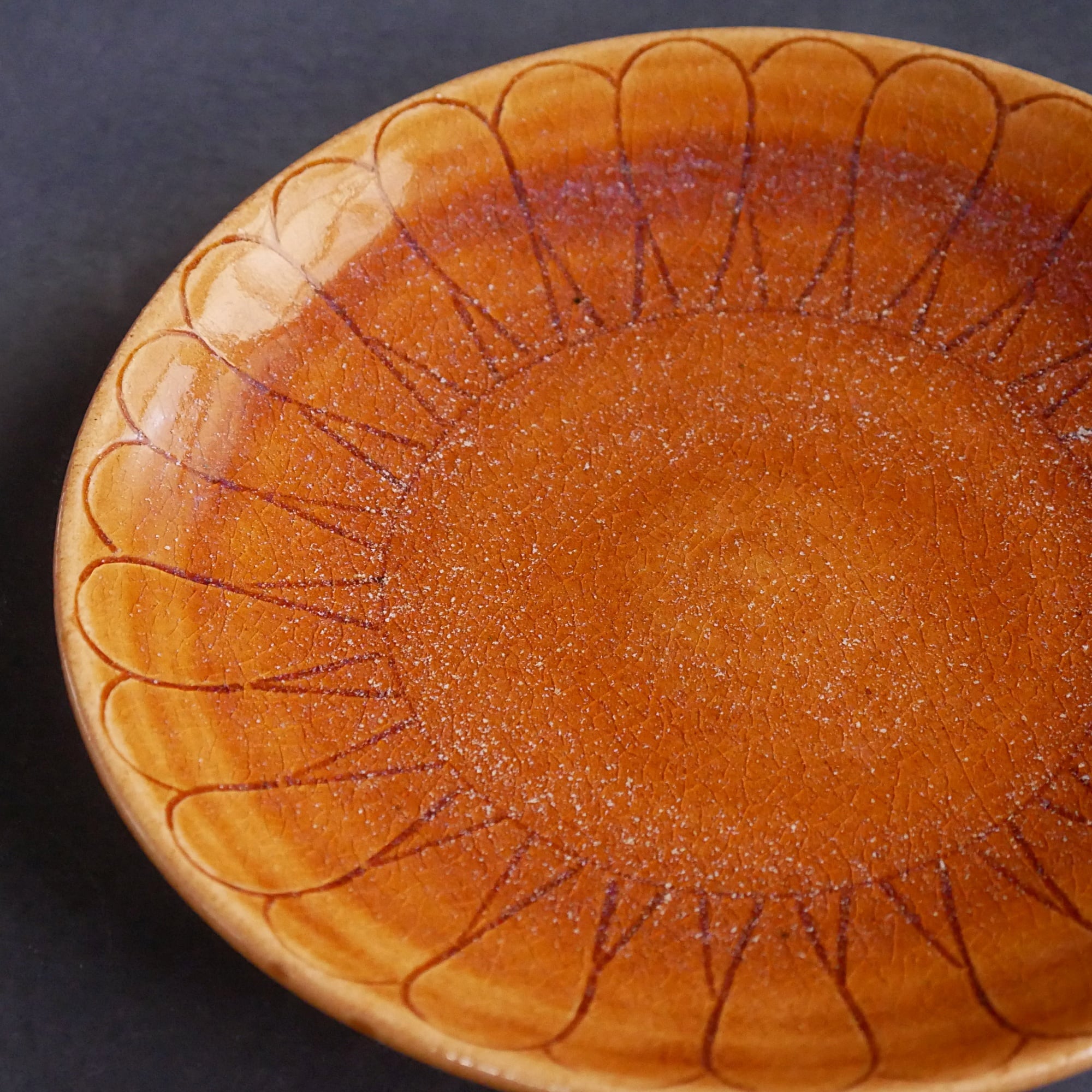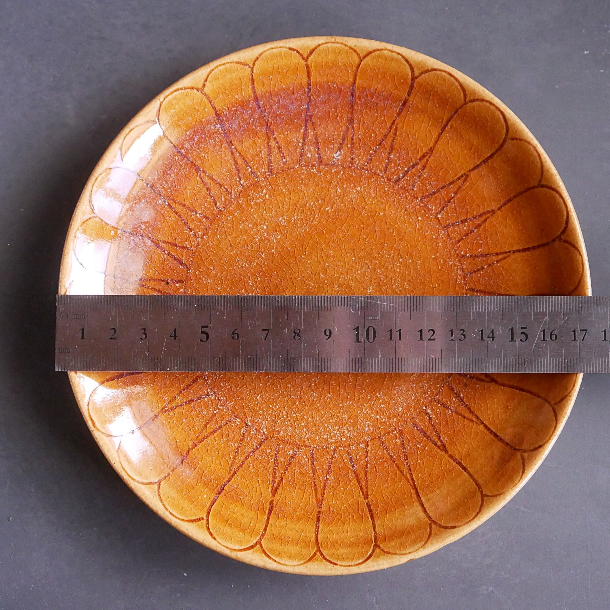 線描き輪花皿 飴 44.18.PM