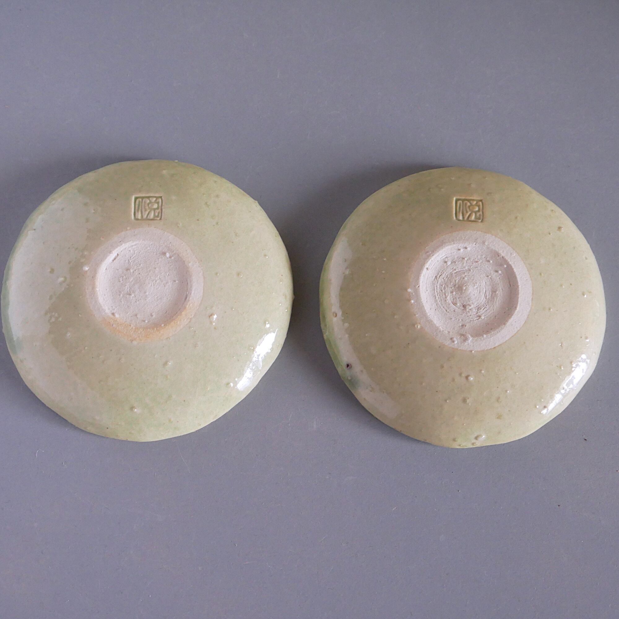 緑釉荒土豆皿 2枚セット